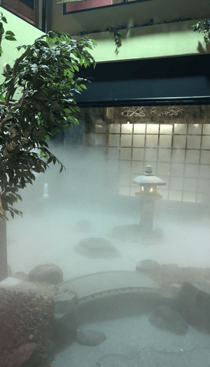 2024年10月、その日本庭園をさらに魅力的にするため、弊社の超音波ミスト演出を導入。幻想的な「雲海」と、流れ落ちる「滝ミスト」の常設演出を実現しました。