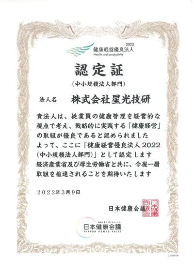 「健康経営優良法人2022(中規模法人部門)」に認定されました。